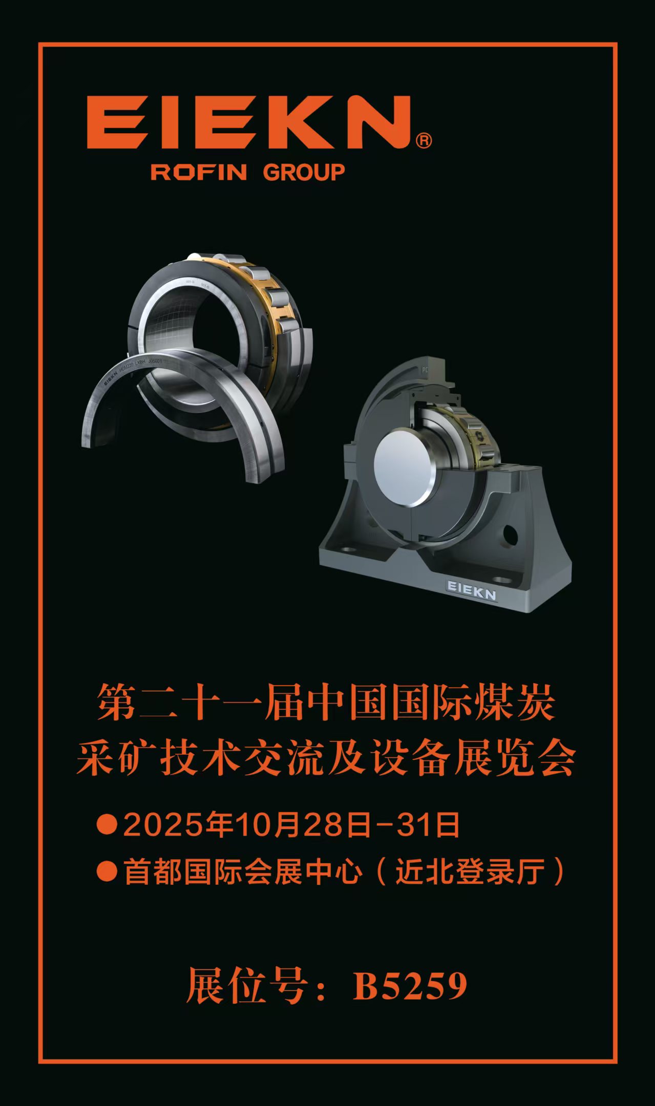 2025年10月28日,第二十一届中国国际煤炭采矿技术交流及设备展览会在首都国际会展中心盛大开幕。作为煤炭采矿领域极具影响力的行业盛会,本次展会吸引了众多国内外知名企业参展。其中,EIEKN艾肯轴承重装亮相B5259展位,凭借其全方位展示的高端轴承产品与专业服务,成为展会现场的一大亮点。